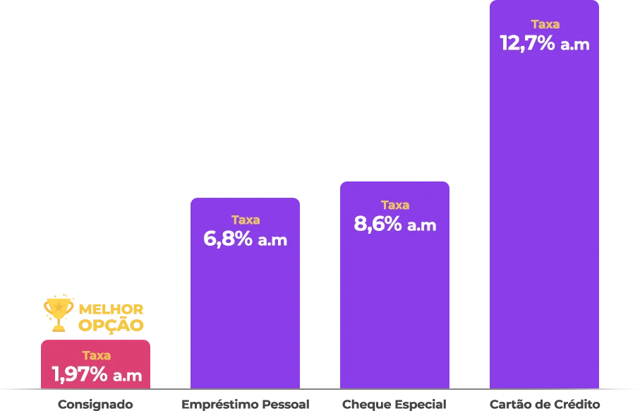 O crédito consignado é rápido e descomplicado, ou seja, a aprovação sai muito mais rápido. Além disso tem parcelas pré-fixadas, maiores prazos e juros mais baixos em comparação aos demais créditos do mercado, compare e veja.